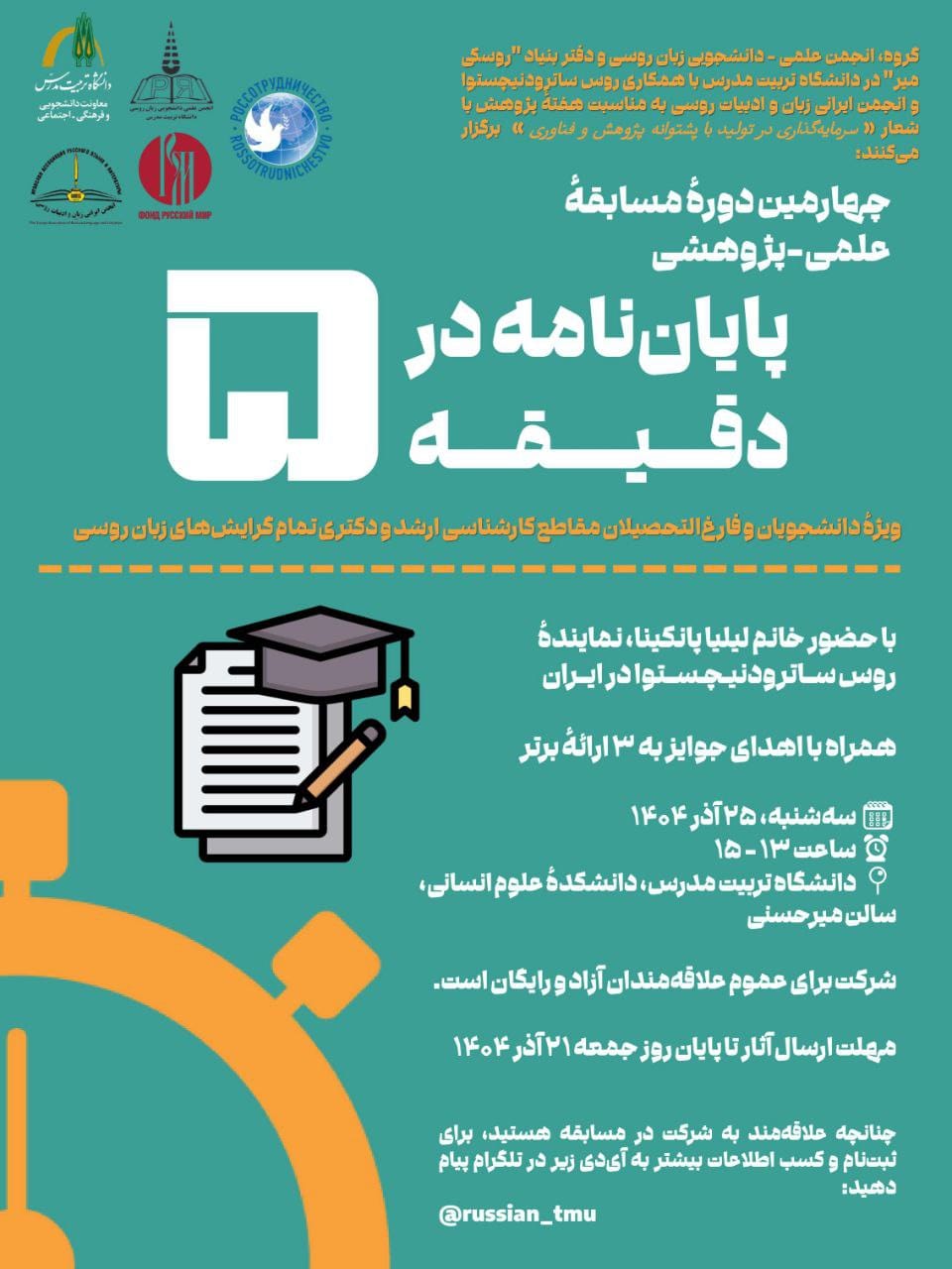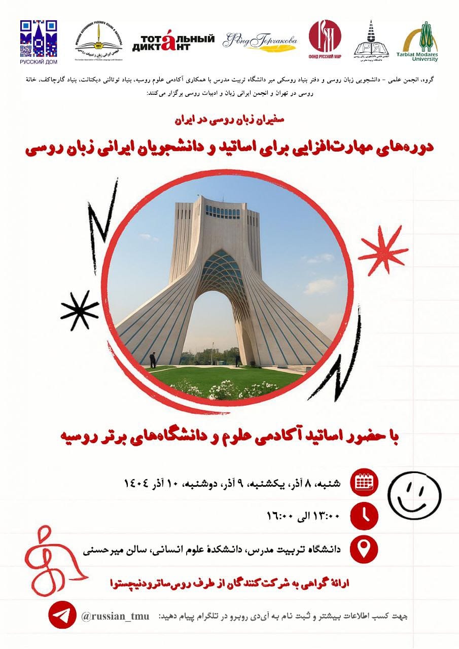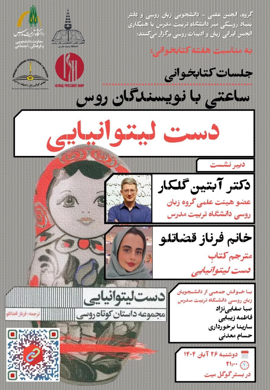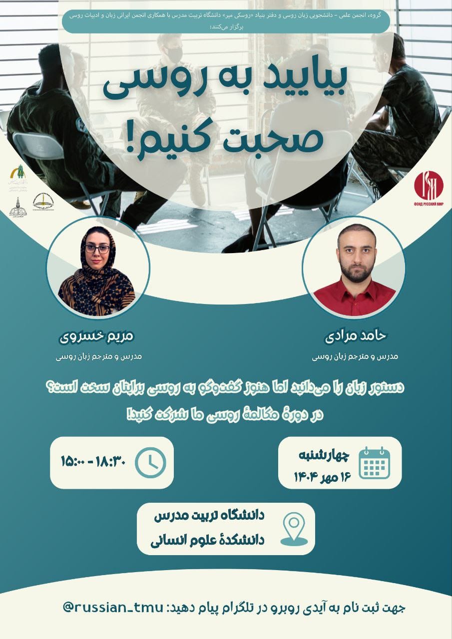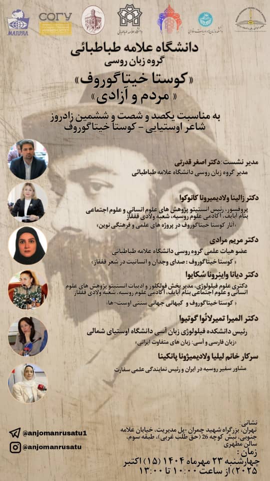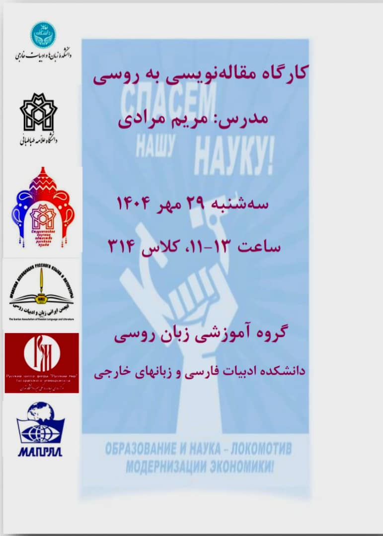 انجمنهای زبان و ادبیات فارسی، زبان و ادبیات انگلیسی، زبان و ادبیات روسی، زبان و ادبیات فرانسوی، زبان عربی و آموزش زبان انگلیسی با همکاری معاونت فرهنگی و اجتماعی تقدیم میکنند: