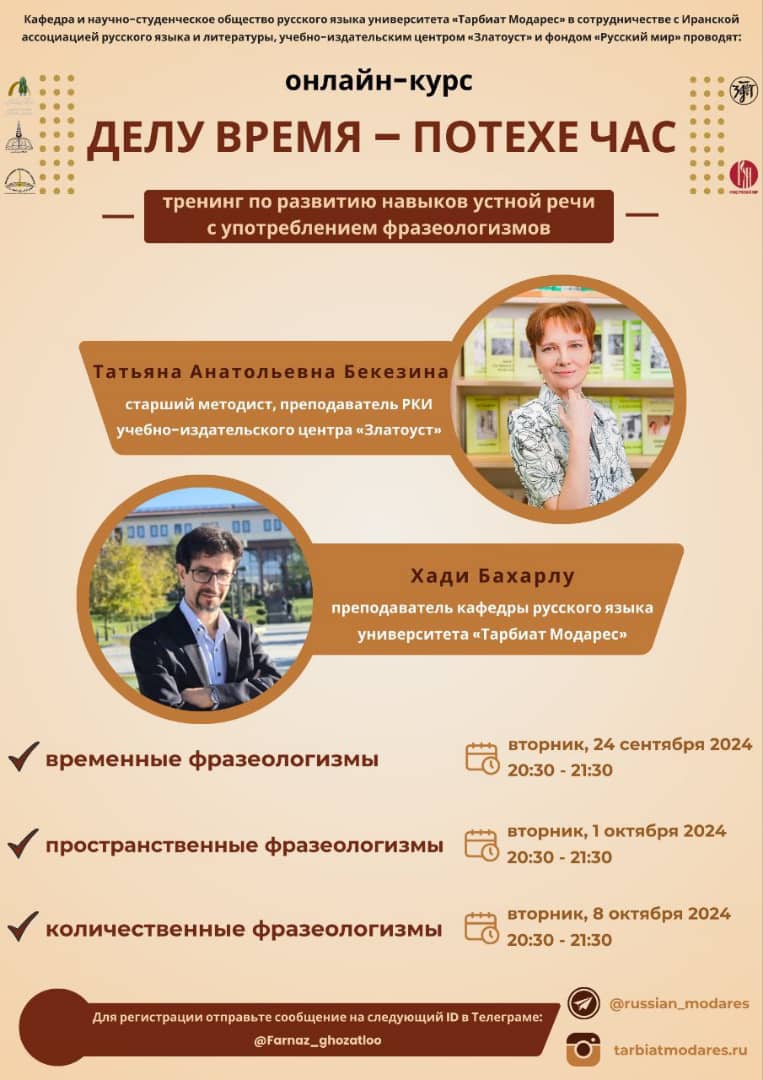 گروه زبان روسی و انجمن علمی-دانشجویی دانشگاه تربیت مدرس با همکاری انجمن زبان و ادبیات روسی ایران، مرکز آموزشی-انتشاراتی «زلاتائوست» و بنیاد «روسکی میر» برگزار میکنند: