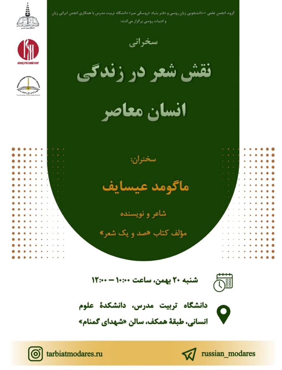 با عرض سلام و ادب خدمت همه اعضای محترم انجمن ایرانی زبان و ادبیات روسی،